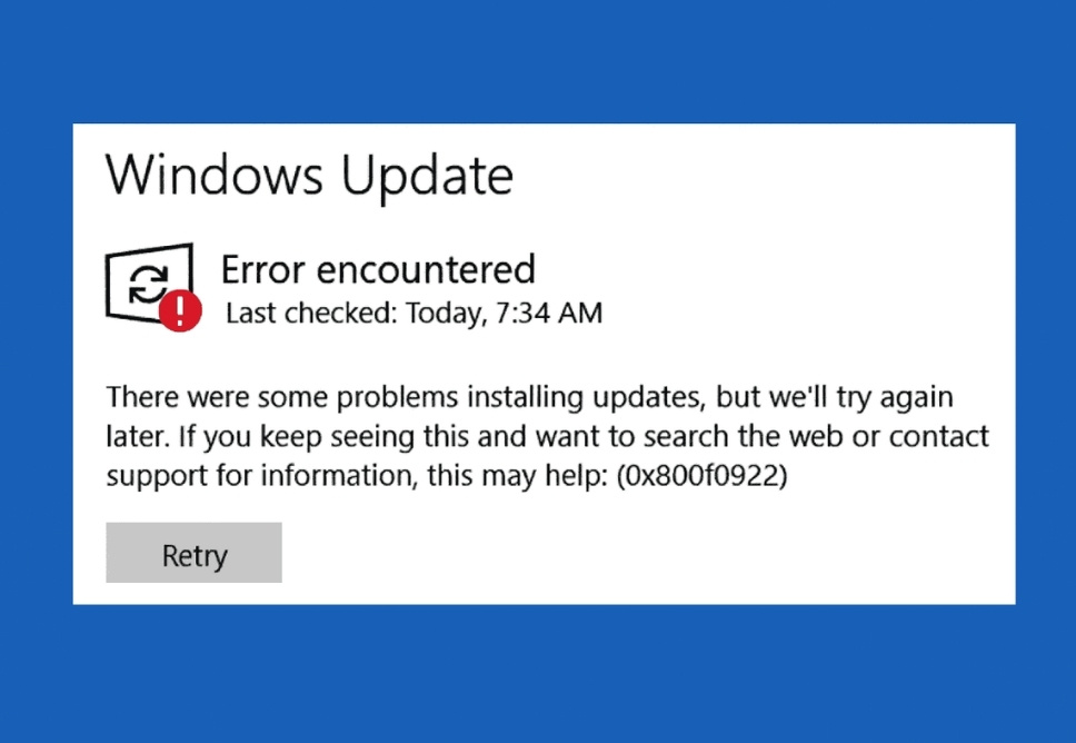 Tổng Quan Về Lỗi 0x800f0922 Trong Windows Update